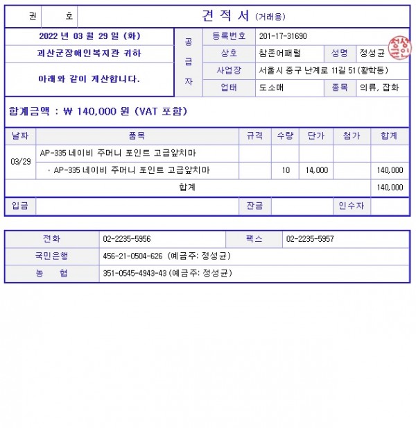 > -견적서(직인에 도장 부탁드립니다) 요청 드립니다.