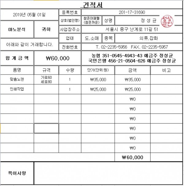 참존입니다. 견적서 드립니다. 발주시에는 연락을 꼭 주셔야 작업이 가능합니다.
