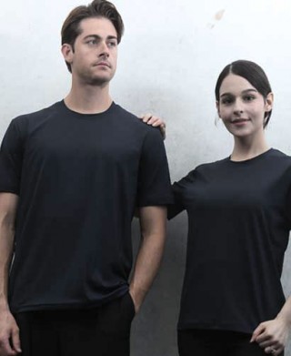 T-12 스판덱스 검정 라운드 반팔 > 티셔츠