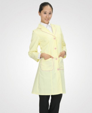 4계절용으로 입을 수 있으며 노랑색상에 핑크띠가 들어가 예쁘게 하였습니다 약사,의사.여실험복,영양사등 그밖에 행사용에 쓰입니다.