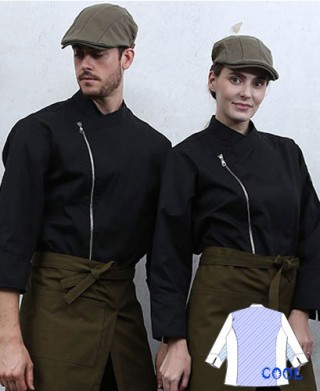 KO-85 검정 지퍼 슬립 기능성 쿡복 ㅡ(긴팔칠부겸용) 쿨메시적용 > 칠부조리복