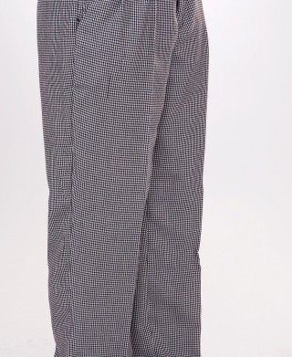 체크무늬 원단으로 제작한 세련된 디자인의 주방바지 입니다.