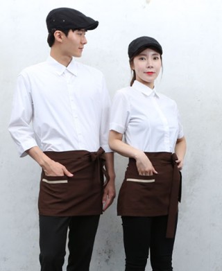 폴리100% 살짝 두꺼운 폴리원단을 사용하여 내구성이 좋으며 카페 주방 잘 어울리는 곳에서 착용가능합니다.