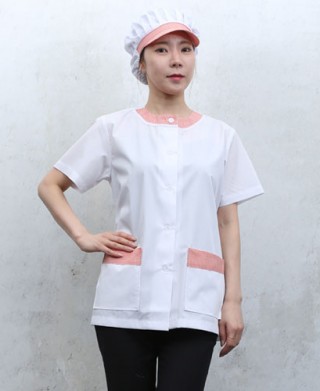 HA-645 오렌지체크 라운드카라 반팔 > 위 생 복