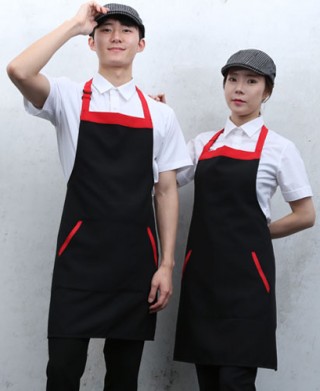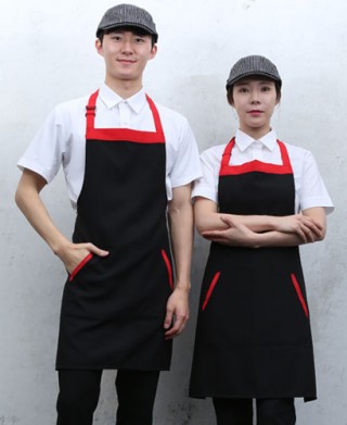 AP-922 블랙 주머니 사선 배색 > 앞치마