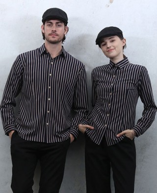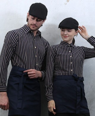 폴리에스테르95% 스판텍스5% 스트라이프원단 으로 어느 매장에서든 잘 어울리게 되었으며 잘 어울리는 모자와 앞치마를 선택하시면 한결 돋보입니다