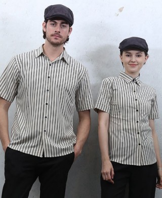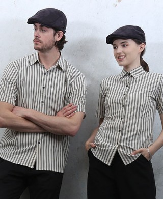 Y-742 엣지 베이지 검 스트라이프ㅡ ㅡ반팔 > 셔츠/서빙복