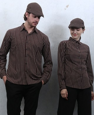 Y-811 엣지 커피 스트라이프 셔츠 ㅡㅡ긴팔 > 셔츠/서빙복