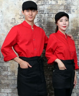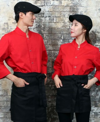 KO-715-4 레드 원버튼 스냅 조리복 (162) > 조리복