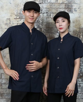 KO-728-3 네이비 원버튼 베이직 반팔 (162) > 조리복