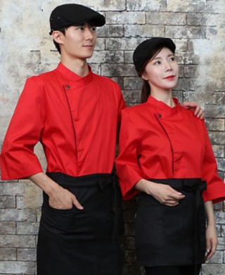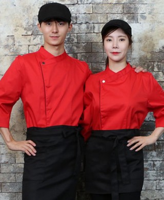 KO-711-5 레드/네이비 띠배색 원버튼 스냅 7부(242) > 조리복