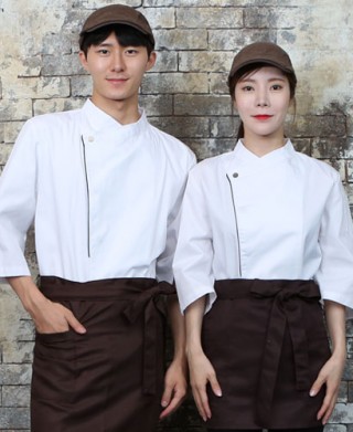 KO-711-2 화이트/네이비 띠배색 원버튼 스냅 7부(242) > 조리복