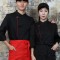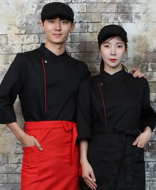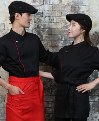 KO-711-1 블랙/레드 띠배색 원버튼 스냅 7부 (242) > 조리복