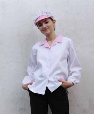 HA-636 30수 핑크체크 카라 위생복ㅡ(얇은원단) > 위 생 복