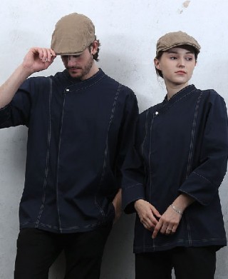 KO-3724 네이비 원버튼 스티치 ㅡㅡㅡ (남녀공용) > 긴팔조리복