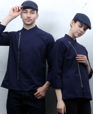 KO-86 네이비 지퍼 슬립 기능성 쿡복-(긴팔칠부 겸용) 쿨메시적용 > 칠부조리복