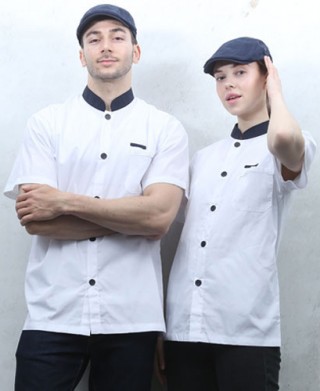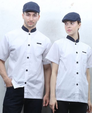 KO-1823 백색네이비띠 배색 싱글단추 반팔 조리복 > 조리복