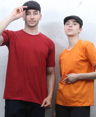▶T3-74 반팔 이중면 라운드ㅡㅡㅡㅡ(자주/오렌지) > 티셔츠