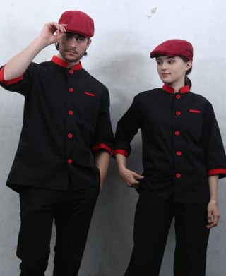 CO-710 NEW 검정 적색 포인트 칠부 (4) > 조리복