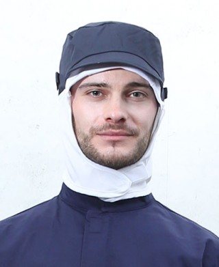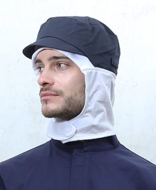 창이 있는형태로 마스크걸이가 부착된 HACCP용 위생모자입니다. TC186/COOL FABRIC