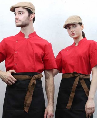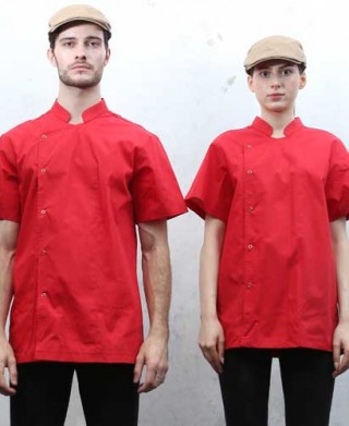 KO-3625 적색 원버튼 반팔 조리복 > 조리복