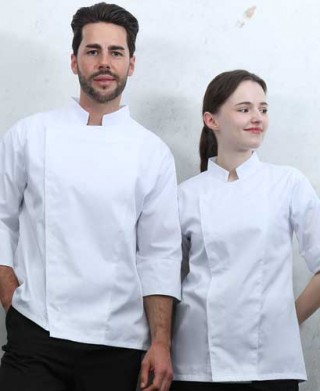 KO-230-1 화이트 원포인트 스냅 조리복 [반팔겸용] (겨드랑이/등판 쿨메시) > 조리복