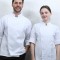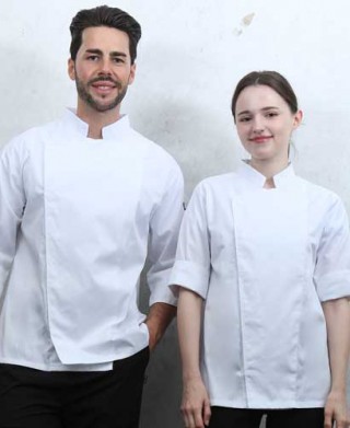 KO-230-1 화이트 원포인트 스냅 조리복 [반팔겸용] (겨드랑이/등판 쿨메시) 요약정보 및 구매