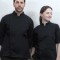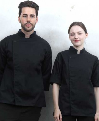 KO-230-2 블랙 원포인트 스냅 조리복 [반팔 겸용] (겨드랑이/등판 쿨메시) > 조리복