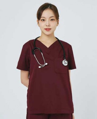 101W-4 여성 쿨스판 V넥 베이직 스크럽 버건디 > 실험복/의사복
