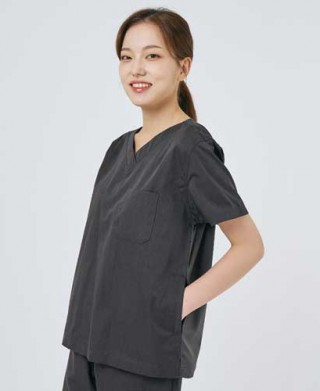 201W-2 여성 쿨스판 크루넥 베이직 스크럽 그레이 > 실험복/의사복