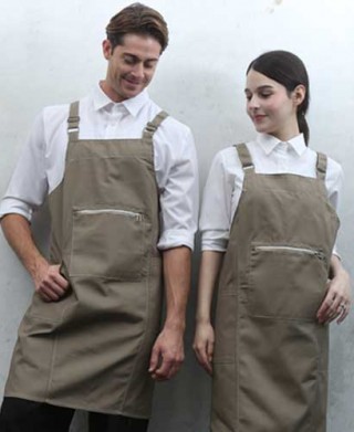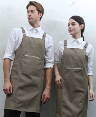• Q-775 베이지 지퍼포켓 스티치 앞치마[OH01]