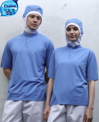 W-279 진하늘 차이나카라 기능성 반팔ㅡ(남녀공용 위생티) ★빅사이즈 있음 > 위 생 복