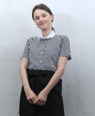 B-127 검정줄지백색카라 반팔 -매장문의 > 셔츠/서빙복