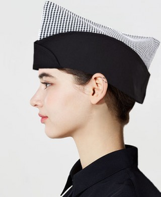 헬로모자 (뒤쪽에 사이즈 조절가능) / 주방에서는 조리모로 홀에서는 서빙용 모자로 사용 가능합니다. 깔끔한 디자인으로 멋스럽게 하였습니다.