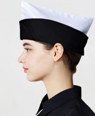 헬로모자 (뒤쪽에 사이즈 조절가능) / 주방에서는 조리모로 홀에서는 서빙용 모자로 사용 가능합니다. 깔끔한 디자인으로 멋스럽게 하였습니다.