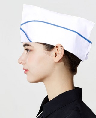 헬로모자 (뒤쪽에 사이즈 조절가능) / 주방에서는 조리모로 홀에서는 서빙용 모자로 사용 가능합니다. 깔끔한 디자인으로 멋스럽게 하였습니다.