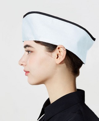 헬로모자 (뒤쪽에 사이즈 조절가능) / 주방에서는 조리모로 홀에서는 서빙용 모자로 사용 가능합니다. 깔끔한 디자인으로 멋스럽게 하였습니다.