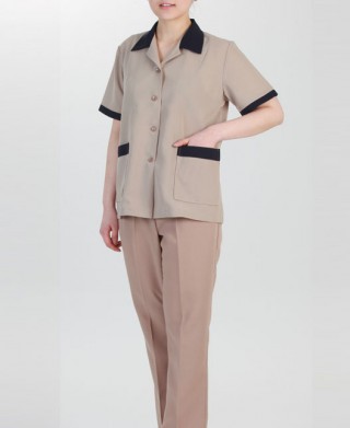 CL-44 베이지 배색 유니폼 반팔 > 위 생 복