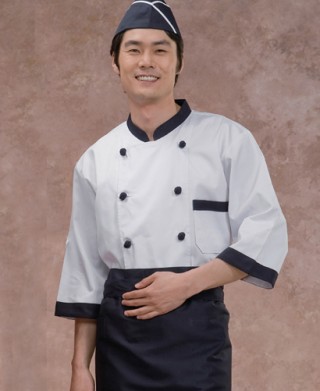 CO-10 백색 진곤색 매듭 단추 칠부 > 조리복