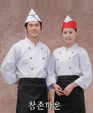 백색 으로 단추에 검정이나 빨강으로 포인트를 주었습니다 레스토랑 퓨전식당 한식 중식 일식등에도 사용가능하십니다