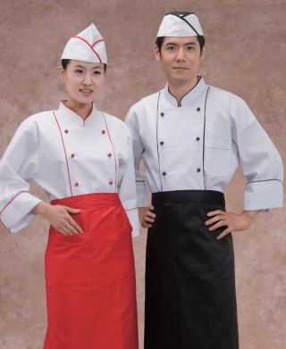 백색 두툼한 기본원단으로 감촉이 좋고 목테두리에 띠가 있어 포인트를 한층 더하였습니다 한식 일식 중식 등 조리하는데 무난히 잘 어울리는 제품입니다.