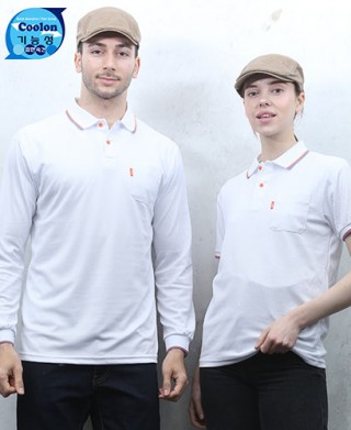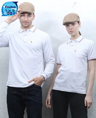 쿨론 기능성원단으로 시원하며 구김이 없고 세탁시에도 빨리마르며 가볍고 좋습니다. 서빙시 행사시 단체복으로 사용하십니다.