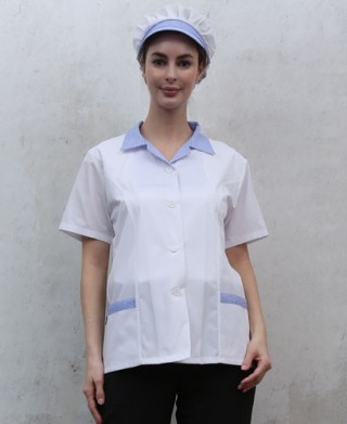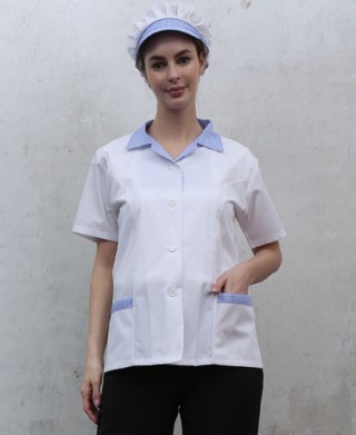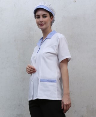 HA-118 반팔 소라체크 쿨스판 위생복 > 위 생 복