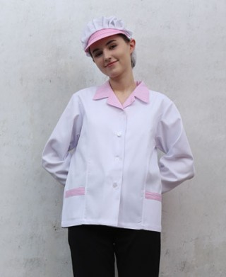 HA-35 20수 핑크체크 카라형 위생복 > 위 생 복
