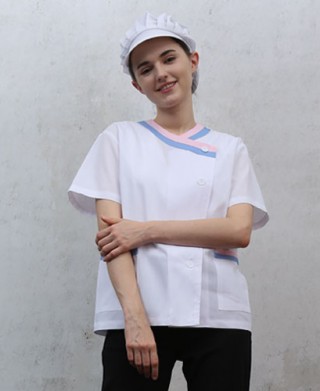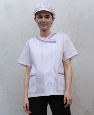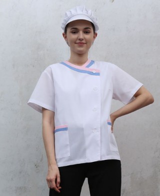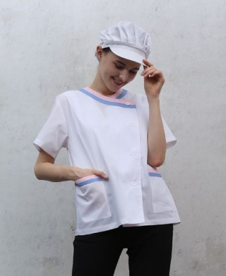 30수 면혼방 65%폴리 35% 면 얇은 원단으로 시원하게 하였고 위생업소 어느곳이든 잘 어울리게 디자인되었습니다. 환경에 맞게 모자와 같이 쓰시면 좋습니다.