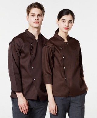 20수 기본원단으로 착용감이 좋고 갈색조리복으로 은은하며 스넵단추형식으로 새롭게 디자인된 제품입니다 커피,베이커리,레스토랑등 어울리는 조리환경에 멋스럽게 하였습니다.