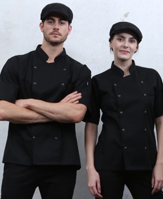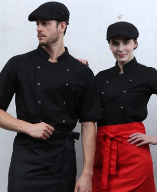 KO-135 반팔 검정 더블단추 스넵ㅡ (겨드랑이/등판 쿨메시) > 조리복