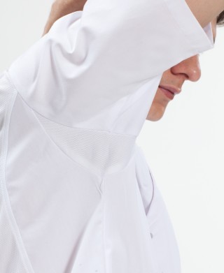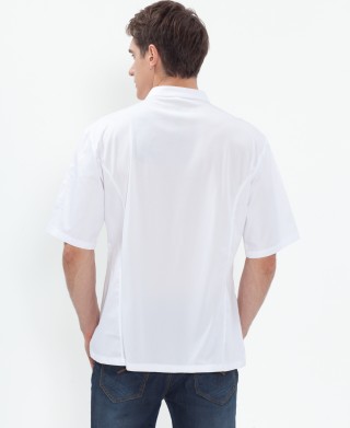 KO-137 반팔 백색 싱글단추 스넵ㅡㅡ (겨드랑이/등판 쿨메시) > 반팔조리복