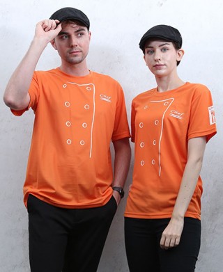 기능성원단사용하여 가볍고 시원하며 일시적으로 또는 티셔츠 입고 조리하시는 분들에게 쿡복처럼 모양을 낸 티셔츠입니다.