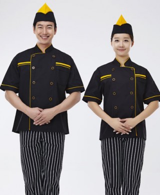 CO-52 노랑 띠 검정 반팔 조리복 > 조리복